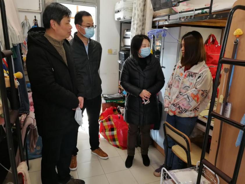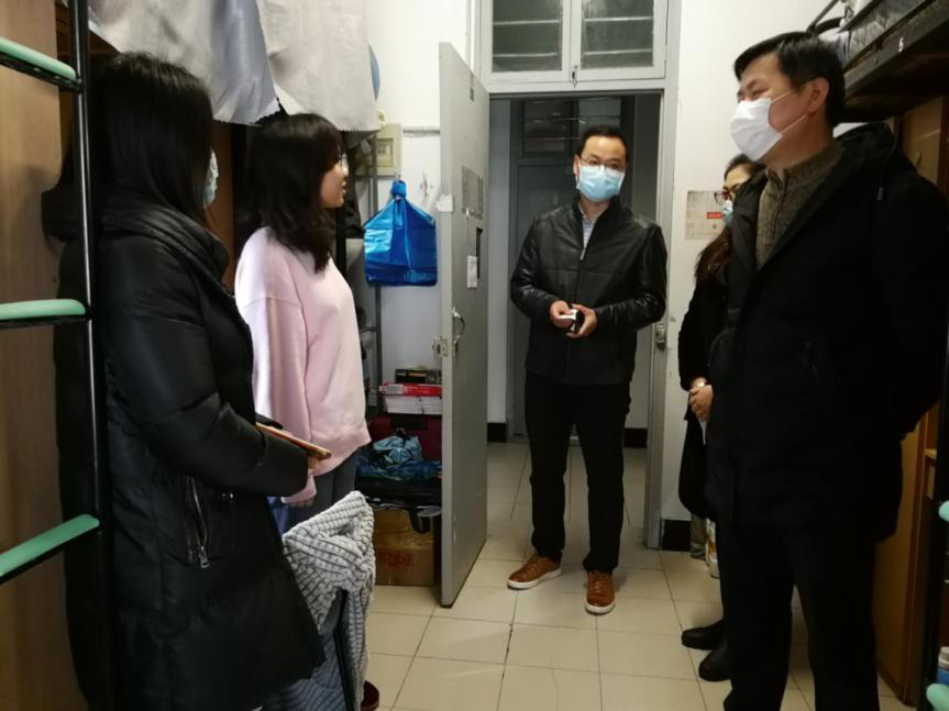 期间,老师们深入本科生和研究生所在楼栋,向提前到校的学生致以新春问候,详细了解寒假学习生活情况、返校过程以及返校后的学习安排。在几个以考研为共同行动的寝室里,徐伟强对取得优异笔试成绩的同学致以祝贺,鼓励准备考研复试的学生要树立信心,及时了解目标院校的相关动态信息,认真做好考研复试相关准备工作;在走访大三备战考研的学生寝室时,他详细了解学生备考情况,询问学习生活上的困难,希望学生明确目标,劳逸结合,制定好薄弱科目的学习计划,并代表学院致以殷切的期望。