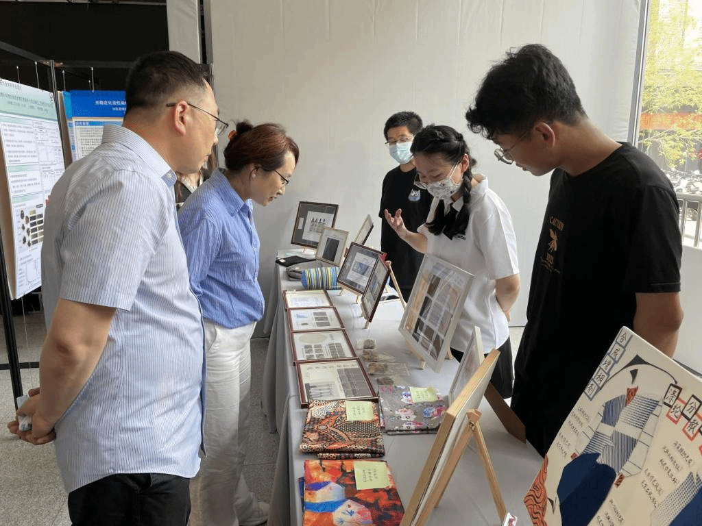 在25号楼1F展示厅,成功举办了行织——现代纺织“三创”人才优秀作品展。5月25日下午,校党委副书记姚珺参观调研h图书馆