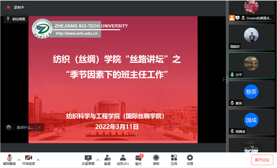 组织全体本科生、研究生班主任开展“丝路讲坛”之育人工作培训会,院党委副书记方平以“季节因素下的班主任工作”进行主讲,学院学工线全体辅导员以及42名本研班主任参加了此次会议。