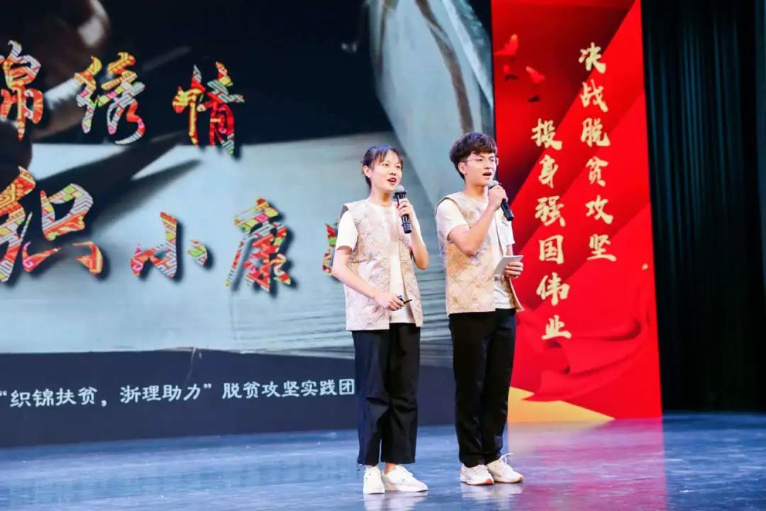 申报的6支团队共有2支队伍获得“十佳团队”称号、1支队伍获得“十佳团队提名”称号、另有3支队伍获得“百强团队”称号,十佳及提名奖获奖数量位居全省高校第一位,学校荣获“最佳组织奖”。其中,2支获得“十佳团队”的队伍都来自于纺织学院,他们分别是“我为丝绸代言——青年大学生走进丝博馆实践团”和“织锦扶贫 浙理助力”脱贫攻坚实践团。