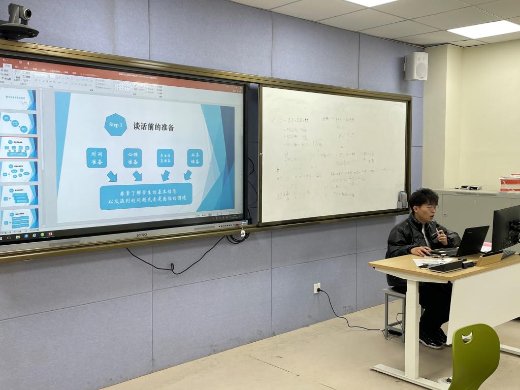 活动中,学院2022级研究生辅导员张云宇从时间准备、心理准备、学生信息准备、业务储备四个方面与在场的老师们分享了前期校内培训的谈心谈话要点技巧并交流了自己的学习与思考心得。