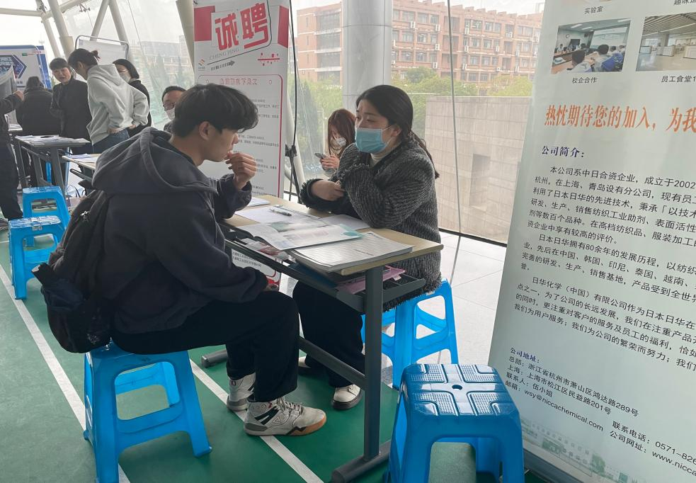 体育馆二楼正式举行。近四十家浙江省纺织材料、印染、助剂相关行业及校友企业进驻会场进行人才招聘,学院本研共计百余名应届毕业生参加了此次春季专场招聘会。