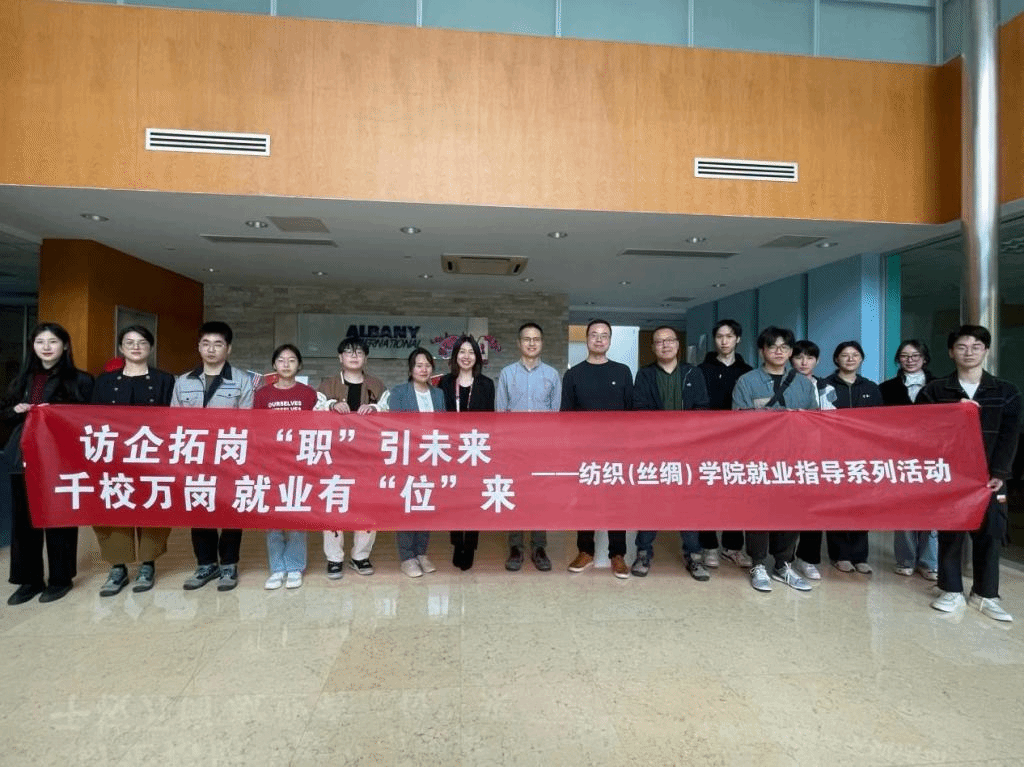 党委副书记方平、团委书记侯霞和部分有意求职的应届本科毕业生一同走访奥伯尼工程纺织品(杭州)有限公司。公司亚太区制造总监Luc ,工厂厂长邓大海、05届校友、公司人力资源经理康丽丽代表公司接待方平一行。