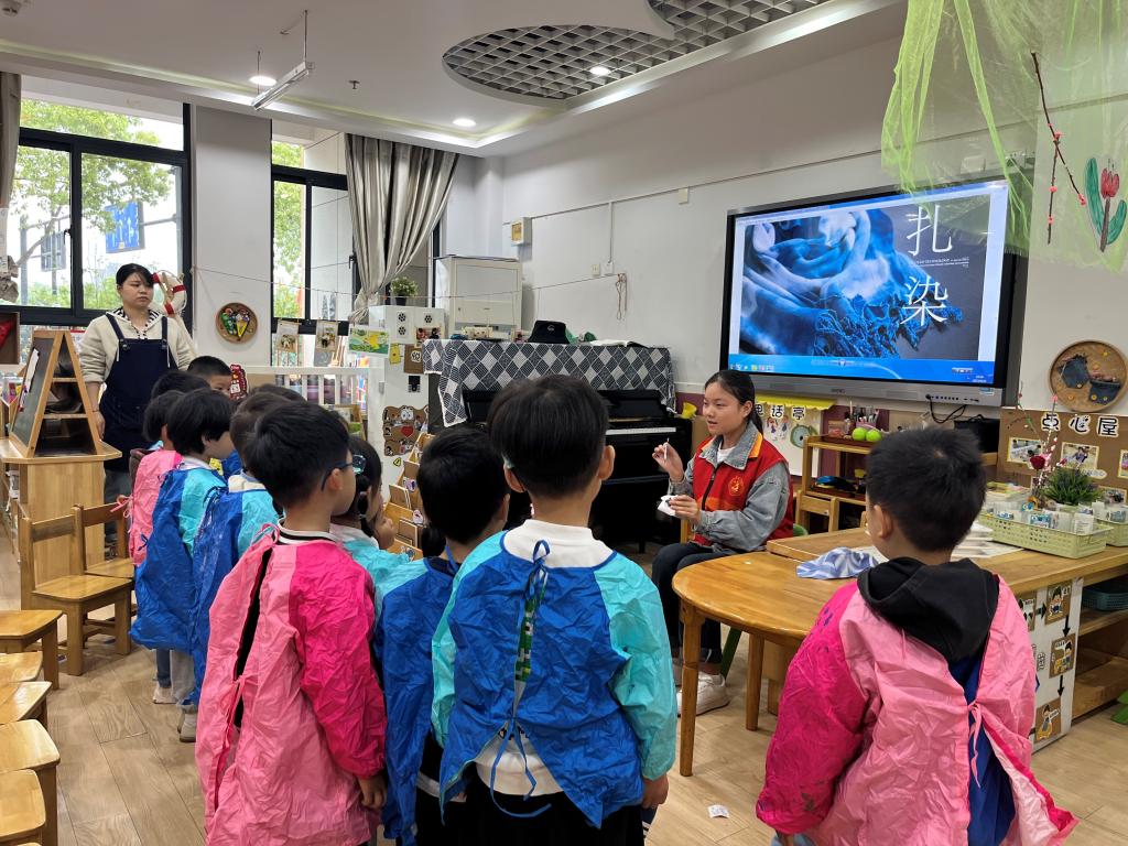 当天,大学生与小朋友还共同完成非遗项目“扎染”体验。h图书馆