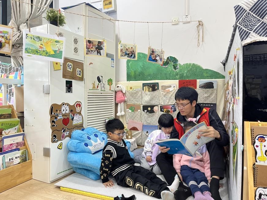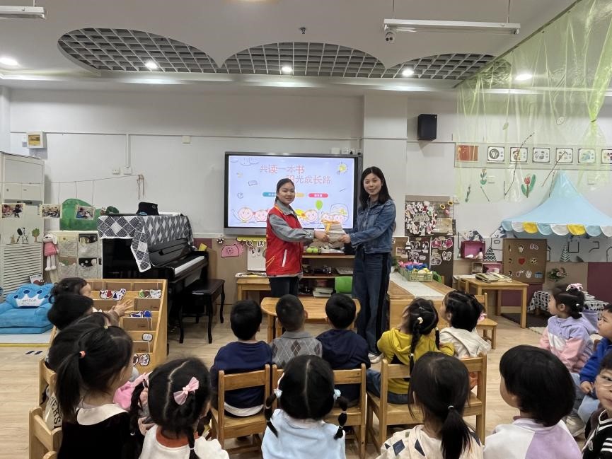 期间,大学生们带来了25本绘本,来到小朋友的教室,在班主任老师顾春霞的组织下,通过游戏、问答等方式,与这里的小朋友互动式、情景式阅读,以大学生的视角带给小朋友全新的知识内容。对于大哥哥大姐姐的到来,小朋友表现出极大的热情,也闪烁出更为乐观阳光的自信。