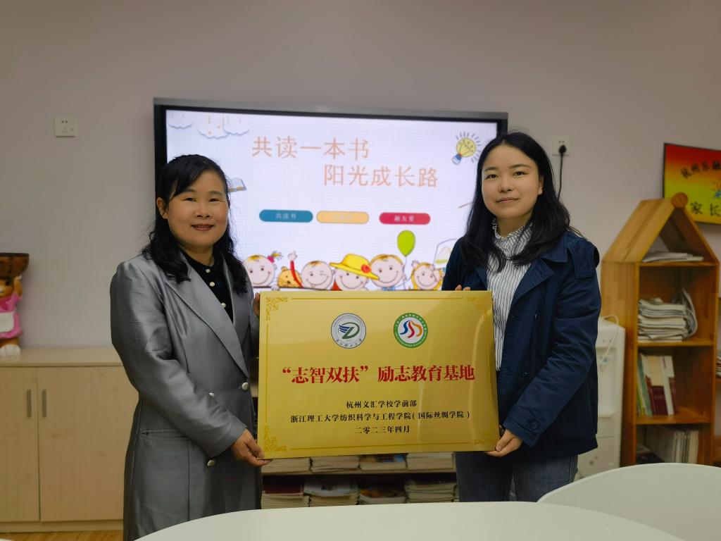 “三丝”网络思政文化工作室在杭州文汇学校学前部建立“‘志智双扶’励志教育基地”。