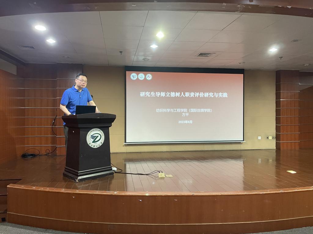 研究生导师立德树人职责评价办法》,期间,他结合前期研究和调查实践,系统解读《关于全面落实研究生导师立德树人职责的意见》、《研究生导师指导行为准则》等文件精神,阐明评价办法产生机制的政策导向,并从过程性、导引性、多维性和发展性四个方向对研究生导师立德树人职责评价办法三级指标进行“实战式”解读。