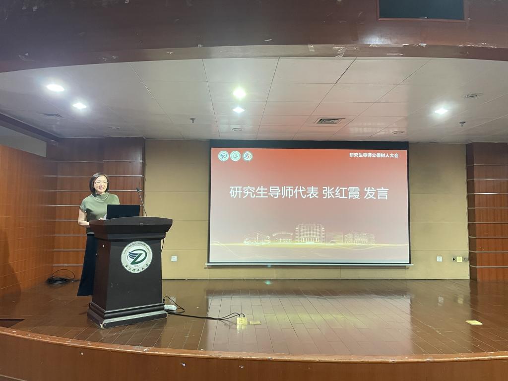 研究生导师代表、2022年度校研究生优良学风示范团队指导教师张红霞作立德树人主题发言,她以“用心做事,以情待人”为主题,通过生动的事例、鲜活的人物,分享了自己在研究生日常培养过程中的深切体会和感悟。