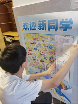 晚上,新生班主任也走进班级寝室,关心同学们的适应情况,轻松的交流氛围缓解了同学们长途跋涉的疲惫感和对陌生环境的拘束感。