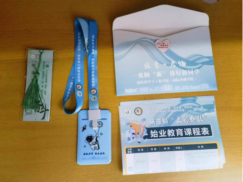 前期,学院为新生准备了“大礼包”,内含学院《始业教育课程表》、《就业信息表》、《升学一览表》、《成才在“纺织”问诊表》、校园卡定制卡套、廉洁书签等,聚焦青春与责任、光荣与梦想主题,给新生带来了意蕴丰富、别具一格的始业教育第一课。