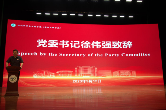 学院党委书记徐伟强致辞,表达了对新生的欢迎,同时,他寄语新生,要有追逐梦想的魄力、革故鼎新的创新力以及坚毅果敢的行动力,要为建设纺织强国注入自己的青春力量,坚定信念、勇毅前行。