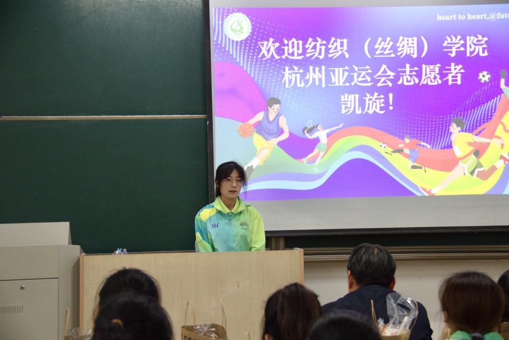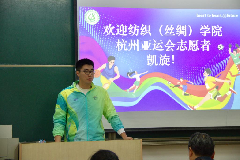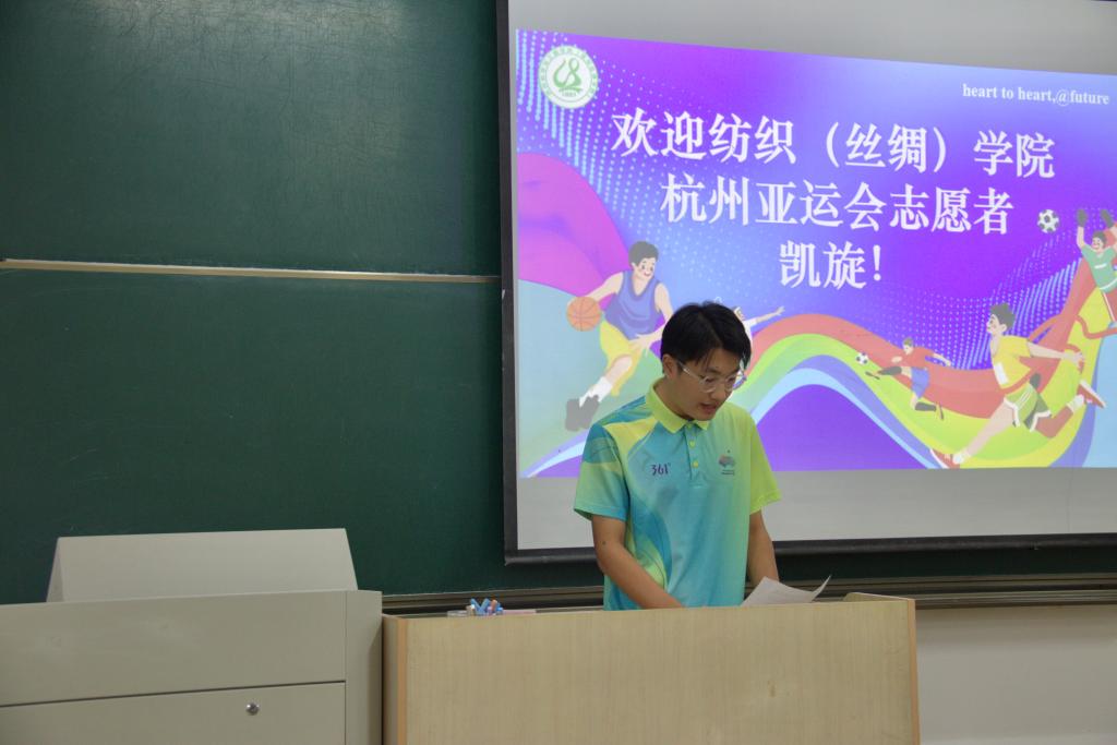 活动伊始,党委书记徐伟强代表学院对大家的归来表示热烈欢迎。他表示,“小青荷”的回归也是载誉而归,志愿者们高效规范的工作为亚运会增光添彩,展示了浙理学生的良好风貌也塑造了青年纺织人的正面形象。他告诉志愿者们,做好服务的同时也不能落下学业,努力工作也要保重身体,学院永远是大家坚实的后盾。