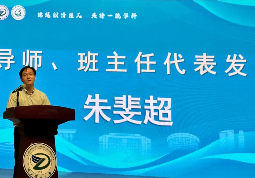 随后,导师、班主任代表朱斐超进行发言,他表示,同学们既是学科、学院、学校事业发展的见证者,也是重要的参与者与贡献者,希望同学们未来满怀精气神地勇敢前行,常回家看看。