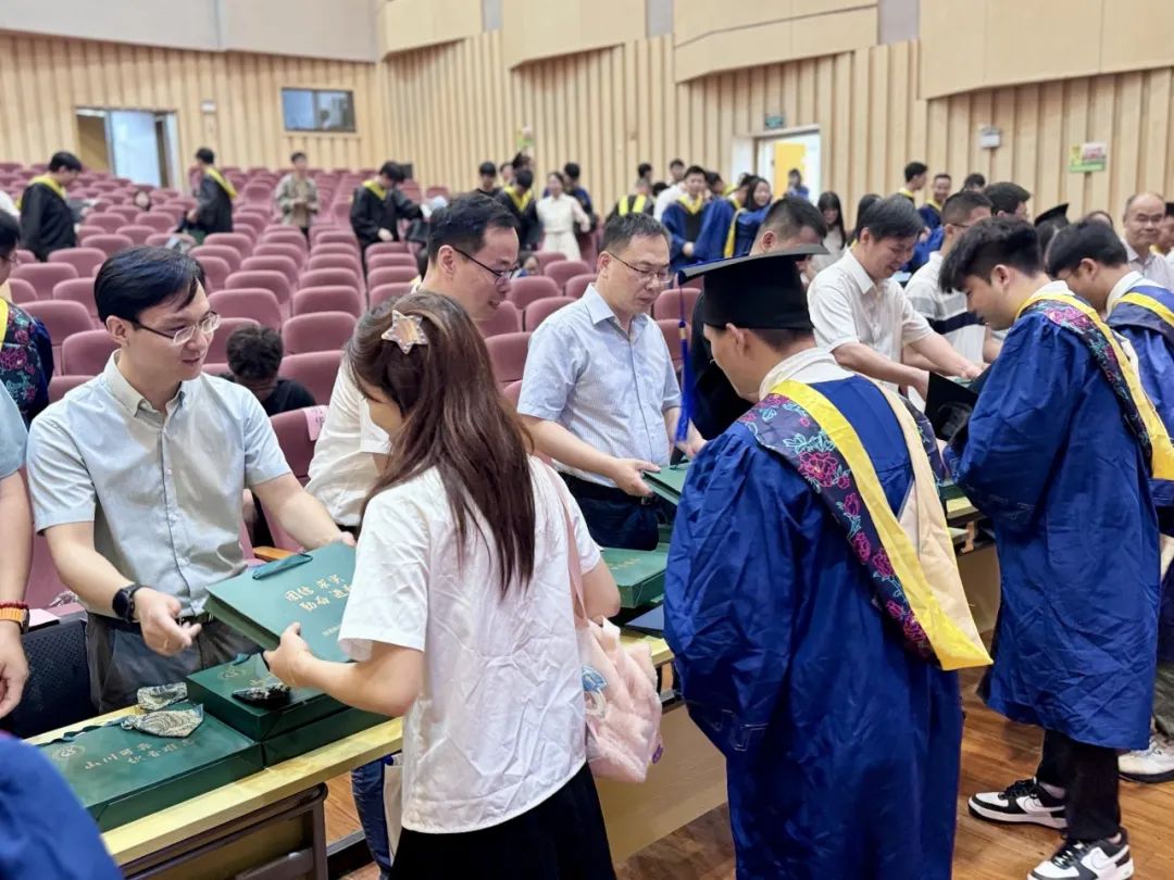 在学校小剧院举行2024届毕业生毕业典礼。校友企业代表、浙江中大新佳贸易有限公司综合部经理刘峰受邀出席典礼,学院党委书记徐伟强、学院院长于斌、学院党委副书记方平、各系负责人、2024届班主任、硕博导师、辅导员、2024届本硕博毕业生以及低年级学生代表参加活动。活动由学院党委副书记方平主持。