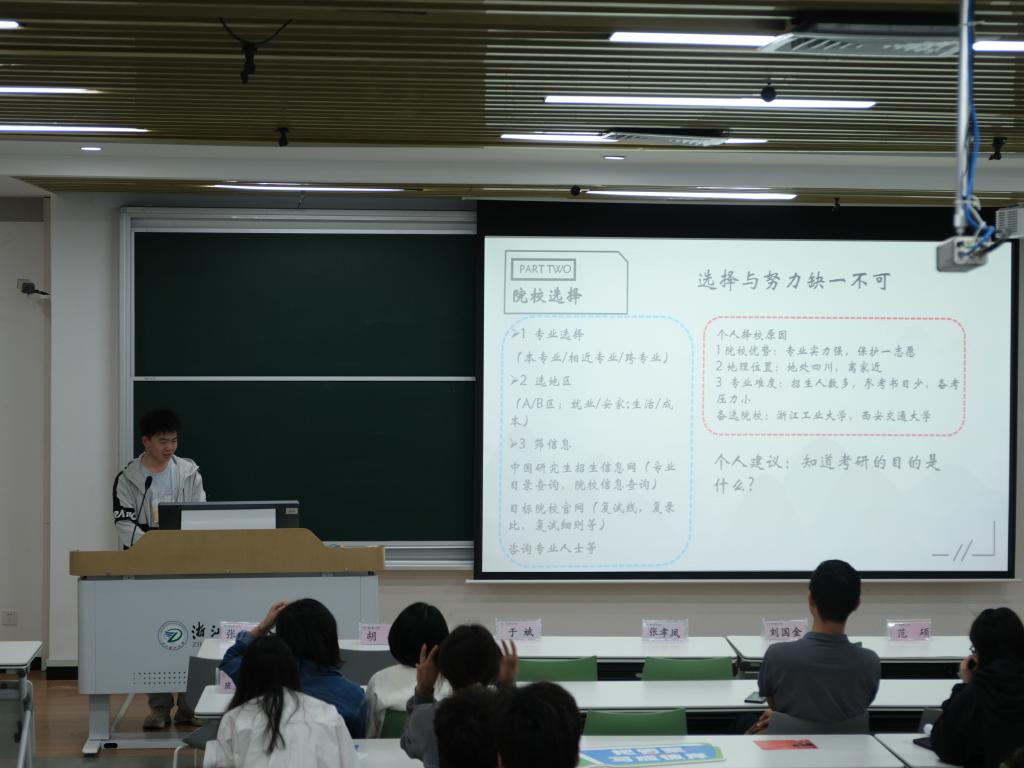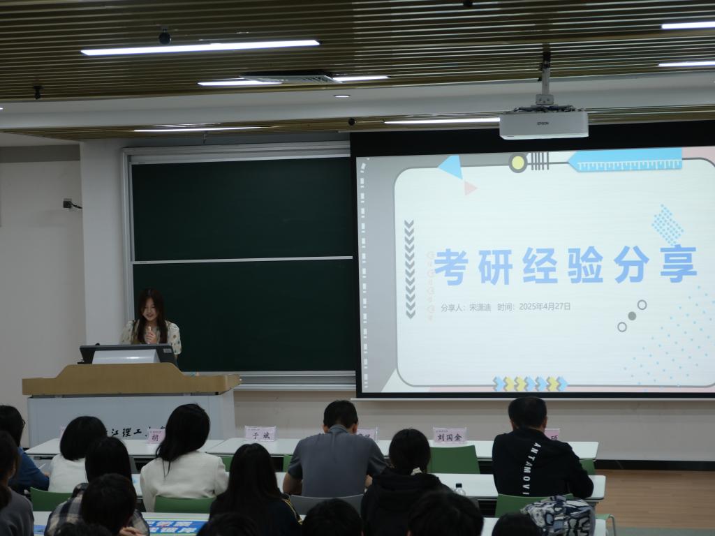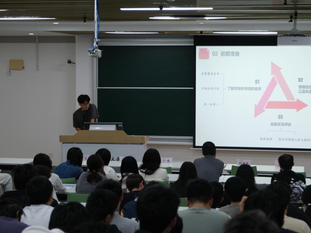 最后,三位2025届考研成功学子受邀进行经验分享。成功考研至东华大学的宋潇迪从“专业课深度突破”,分享如何通过构建思维导图串联知识体系,并建议善用学院导师资源,针对性提升科研论文阅读与写作能力;上岸h图书馆