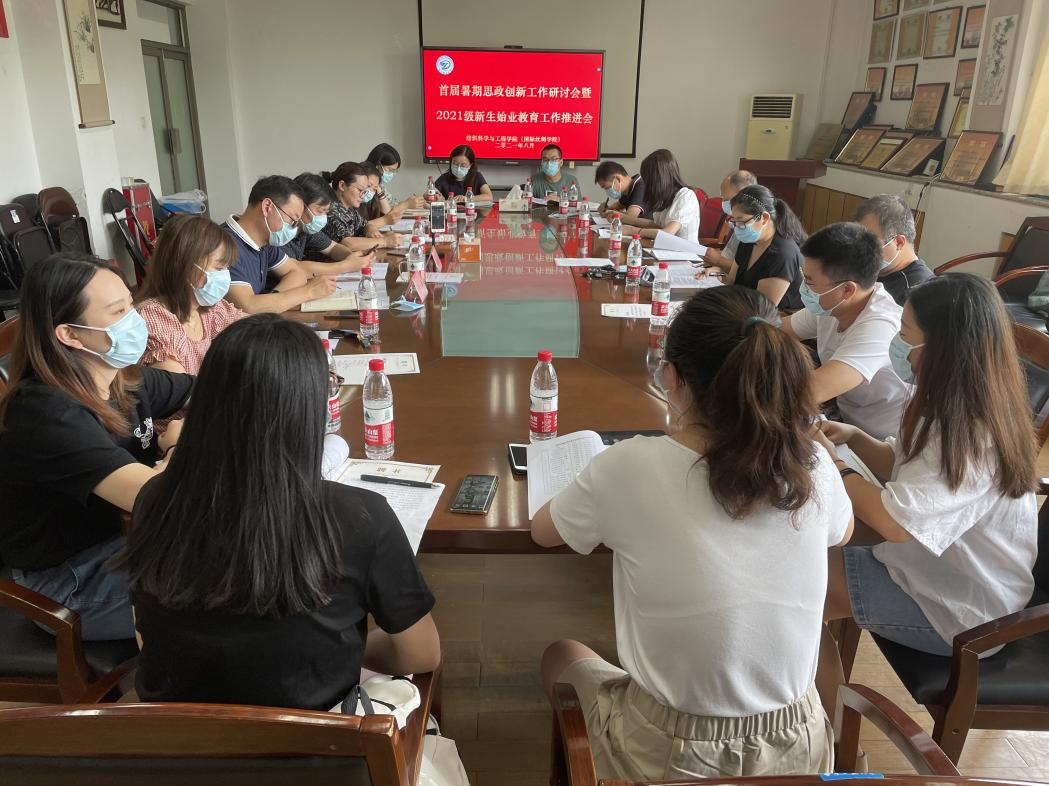 举行“学党史、强思政、促创新、助发展”为主题的首届暑期思政工作研讨会暨2021级新生始业教育推进会。会议采用线上线下相结合的方式进行,院党委书记徐伟强、副书记方平,新聘任的2021级本科生、研究生班主任、院优秀班主任代表以及全体辅导员参加线下会议,其余人员通过网络视频参加会议。会议由学工办主任王惠燕主持。