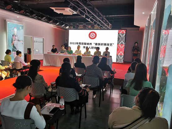 承办的2022年西双版纳“傣族织锦技艺”传承人研修班在西双版纳景洪市聚匠非遗文化传播交流中心举行。西双版纳州文化和旅游局副局长岩温龙、西双版纳州文化馆馆长杨柱标,h图书馆