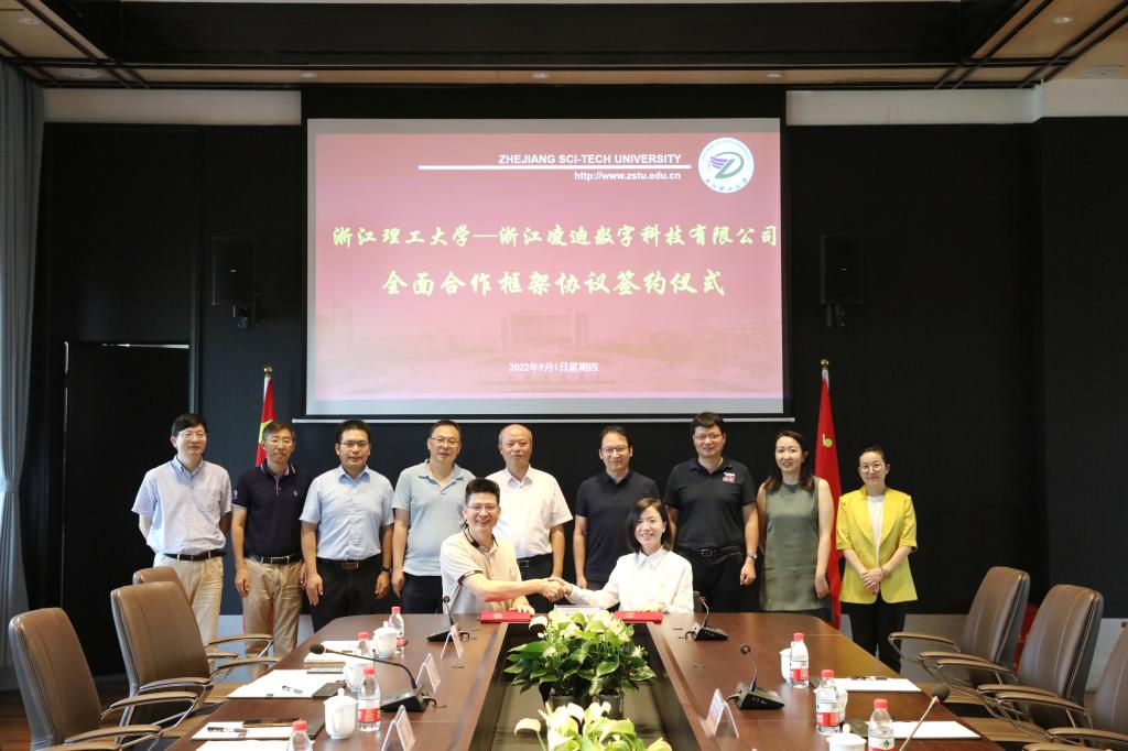与浙江凌迪数字科技有限公司全面合作框架协议签约仪式在临平校区蚕学馆二楼会议室举行。校长陈文兴,浙江凌迪数字科技有限公司创始人兼CEO刘郴、特聘科学家金小刚、教育事业部总经理董灵丽、市场营销VP高文佳出席签约仪式,h图书馆