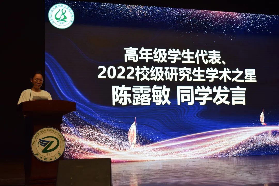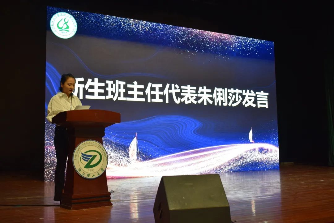 随后,校友代表1990级丝绸工程专业校友、加拿大工程院院士邢孟秋通过视频的方式与现场连线,他根据自己的经历告诉学弟学妹们要学好基础学科,积极参加学校社团,好好学习也要好好生活。紧接着,副院长苏淼老师为“向党组织报到”新生主题征文活动获奖的同学颁奖,徐伟强书记、于斌院长为新生班主任们颁发聘书。新生班主任代表22级纺织类2班班主任朱俐莎老师发言,她从学习、生活、社交三个方面向同学们提出了要求,希望同学们进入大学后能多思考、多实践,培养生活自理能力,以朋为友、融入集体。在校生代表、2022校级研究生学术之星陈露敏同学发言,她结合自己的科研经历,为学弟学妹们提出了宝贵经验,告诉大家要多看文献,勤沟通,寻合作。