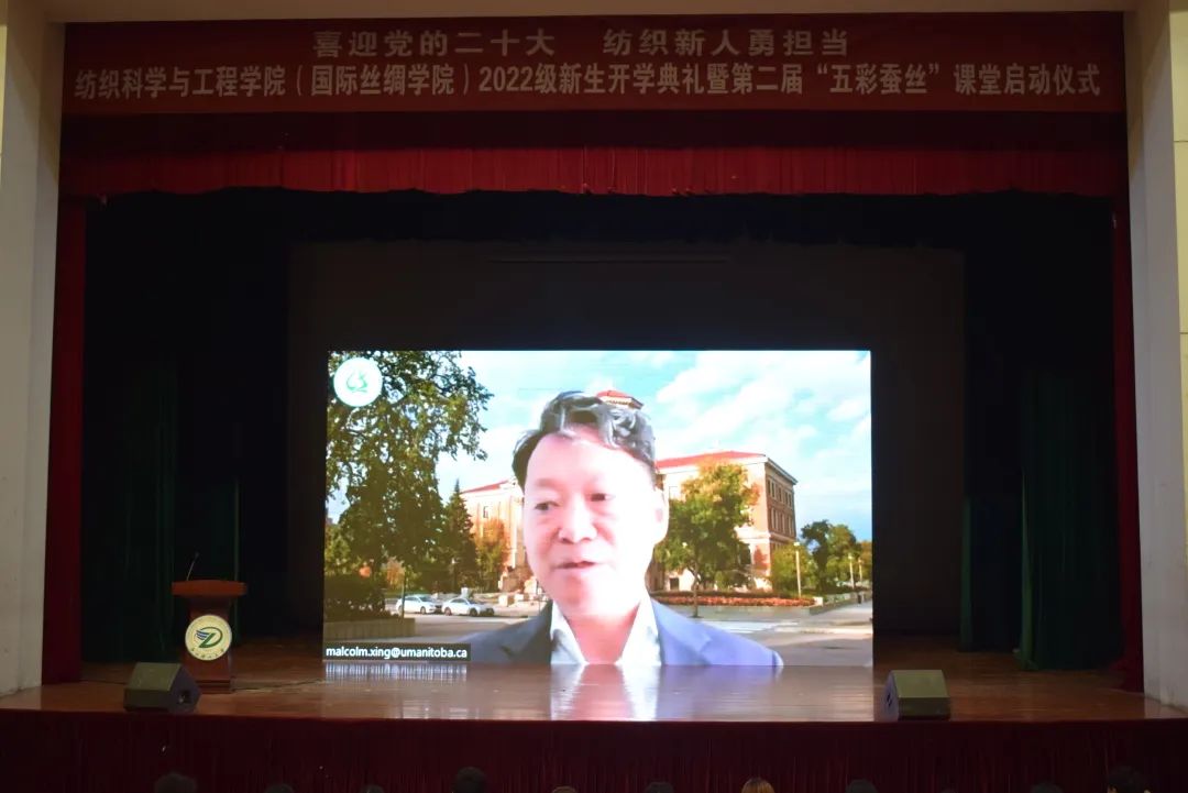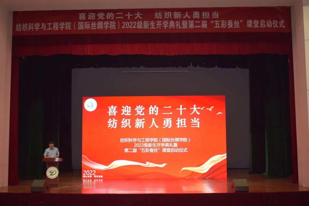 于小剧场举行2022级新生开学典礼暨第二届“五彩蚕丝”课堂启动仪式。出席本次活动的领导和嘉宾有校友代表1990级丝绸工程专业校友、加拿大工程院院士邢孟秋,学院党政班子领导成员以及学院各系负责人,全体新生班主任和全体辅导员。本次开学典礼由学院党委副书记方平主持。