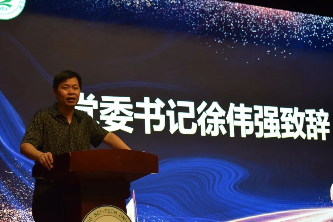 学院党委书记徐伟强致辞,表达了对2022级新生的欢迎,同时阐释了纺织产业的“四个面向”,即纺织具有世界科技前沿的竞争地,面向经济主战场,面向国家重大需求,面向人民生命健康的特征。除此之外,他还寄语新生要珍惜机会、认真学习、刻苦钻研,并表达了学院为新生成长成才保驾护航的决心。