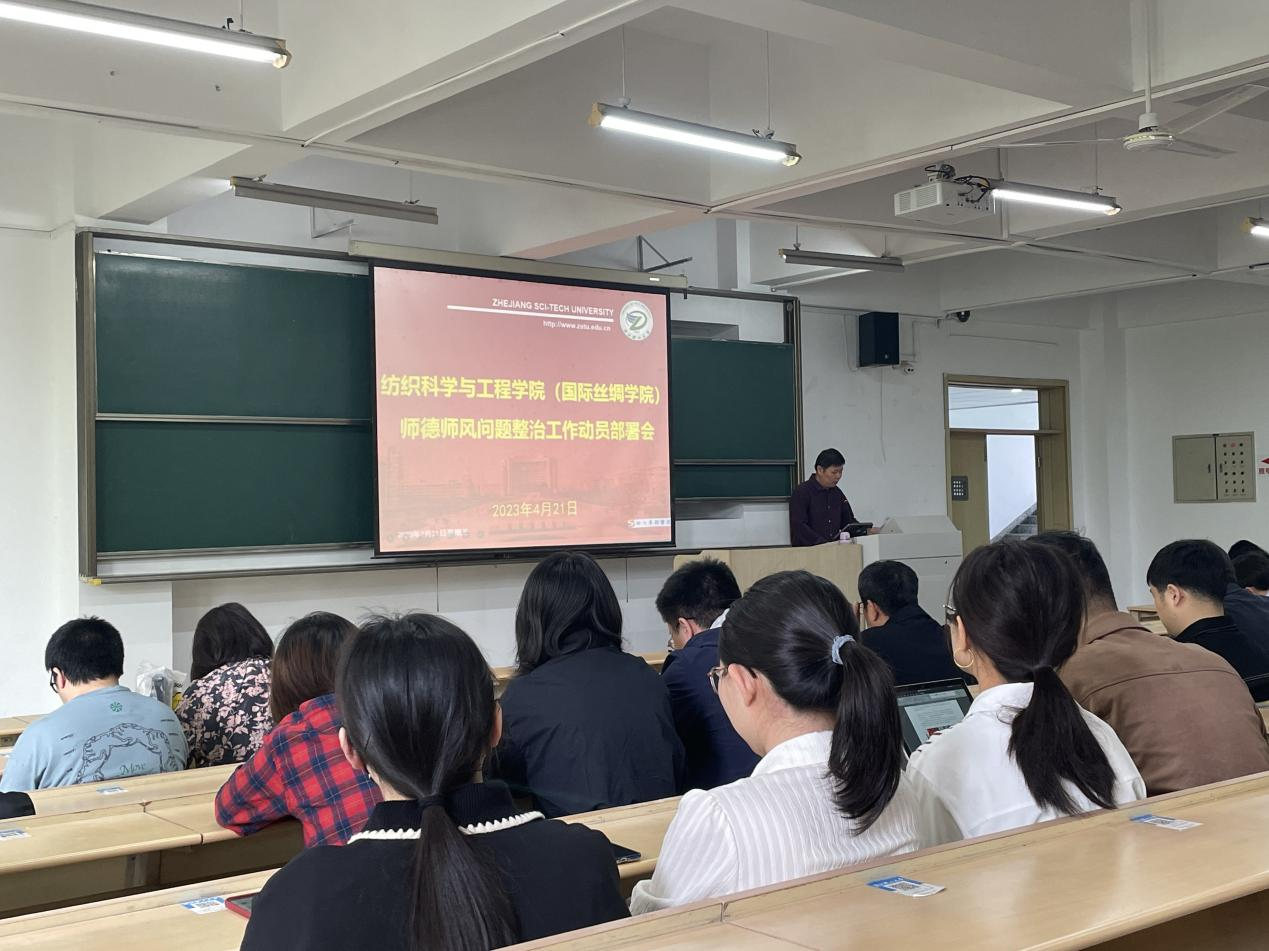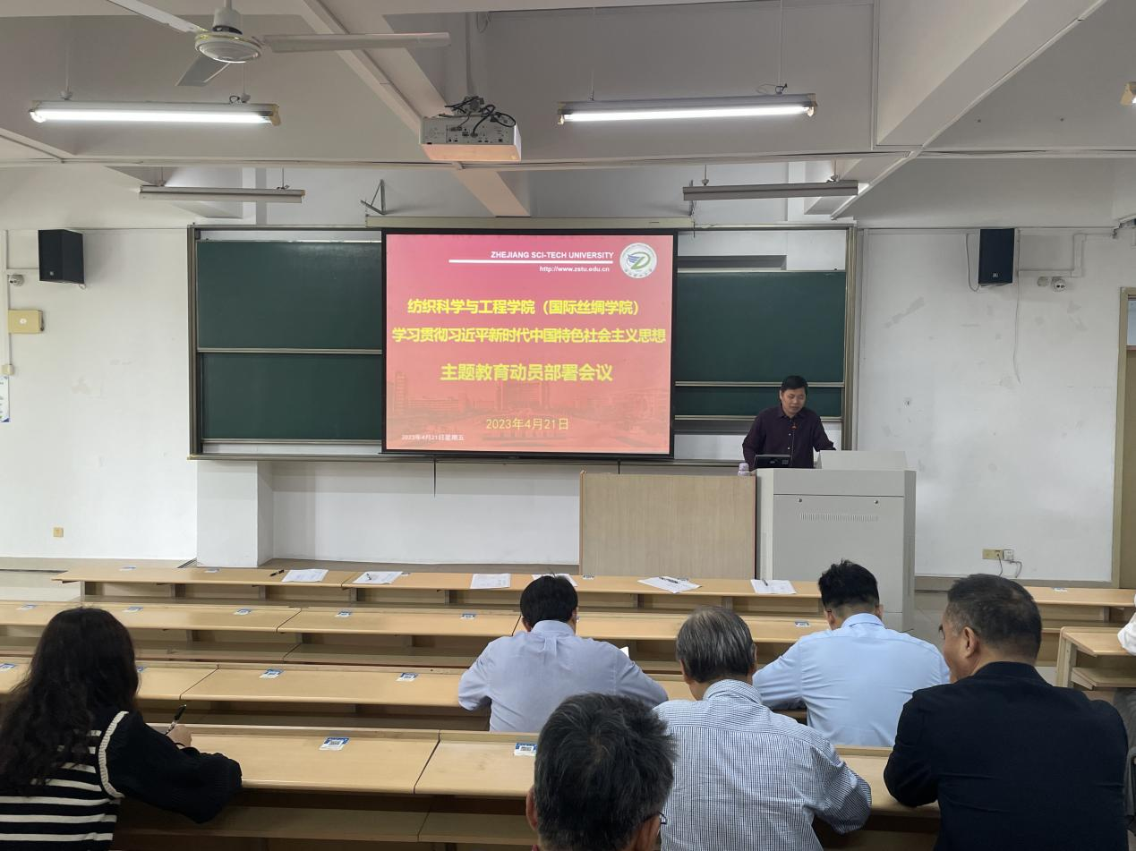 在本次教职工大会上,徐伟强首先就学校深入开展学习贯彻习近平新时代中国特色社会主义思想主题教育工作方案进行了汇报解读。他面向全体教职工开展激励动员,指出开展学习贯彻习近平新时代中国特色社会主义思想主题教育,是党中央为全面贯彻党的二十大精神、动员全党同志为完成党的中心任务而团结奋斗所作的重大部署。浙江作为“八八战略”发源地,纺织学科作为学校老牌优势学科,全体教职工在思想上需高度重视并在主题教育工作中做好良好示范效应。此外他介绍了本次主题教育的开展时间和面向范围,结合学院实际情况介绍了主题教育工作中理论学习、调查研究和检视整改的重点和要点。并就下一阶段学院层面如何开展学习贯彻习近平新时代中国特色社会主义思想主题教育进行阐释。