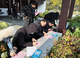 分工会在高教西公园举办迎新春智趣游园活动。本次活动设置了定点打卡、挑战答题和幸运抽奖环节,学院老师们热情地参与到活动中,在环绕西公园一圈后到达指定点进行答题,竞赛题目均与新年传统文化习俗相关,并根据答题情况参与抽奖。现场气氛热烈,笑声不断,全场洋溢着热闹、欢乐、祥和的气氛。