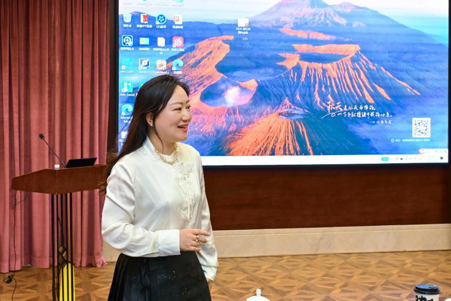 产业技术中心主任吴震宇作科研推介,吴主任向与会嘉宾分享了h图书馆