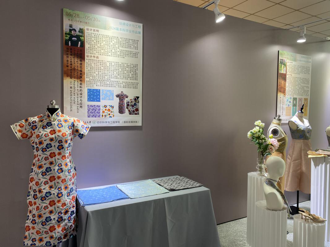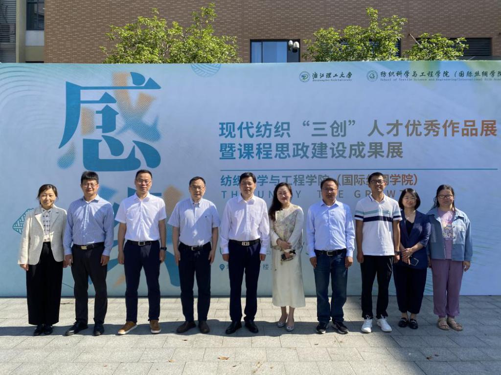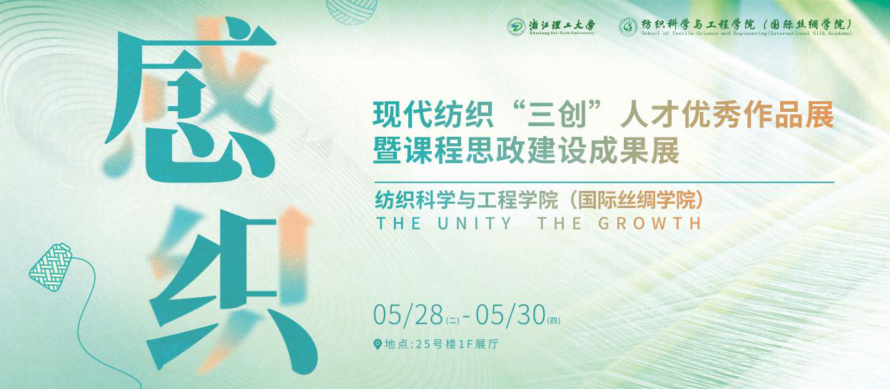 在25号楼1F展示厅,成功举办了感织——现代纺织“三创”人才优秀作品展暨课程思政建设成果展。