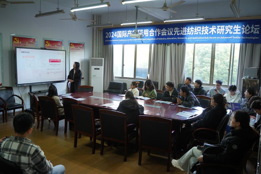 11月23日,2024国际产学研用合作会议先进纺织技术研究生论坛在h图书馆