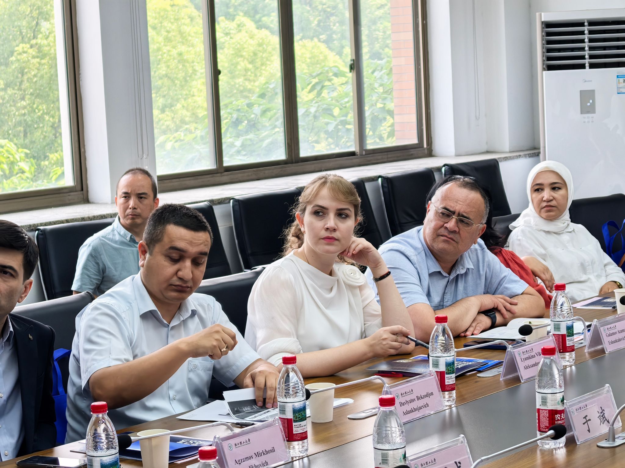 的基本情况、办学历史、国际化工作做了简要的介绍。培训班项目负责人刘国金副院长简要介绍了学院办学历史、专业设置及学院国际交流合作等方面内容。塔什干纺织与轻工业学院化学系系主任Davlatov Bekzod教授简单介绍学校,希望双方未来开展师生交流互访,以丝绸文化为媒,促进两校科技人文交流。此外,项目班主任王琰老师就培训班的教学安排作了详细的介绍。