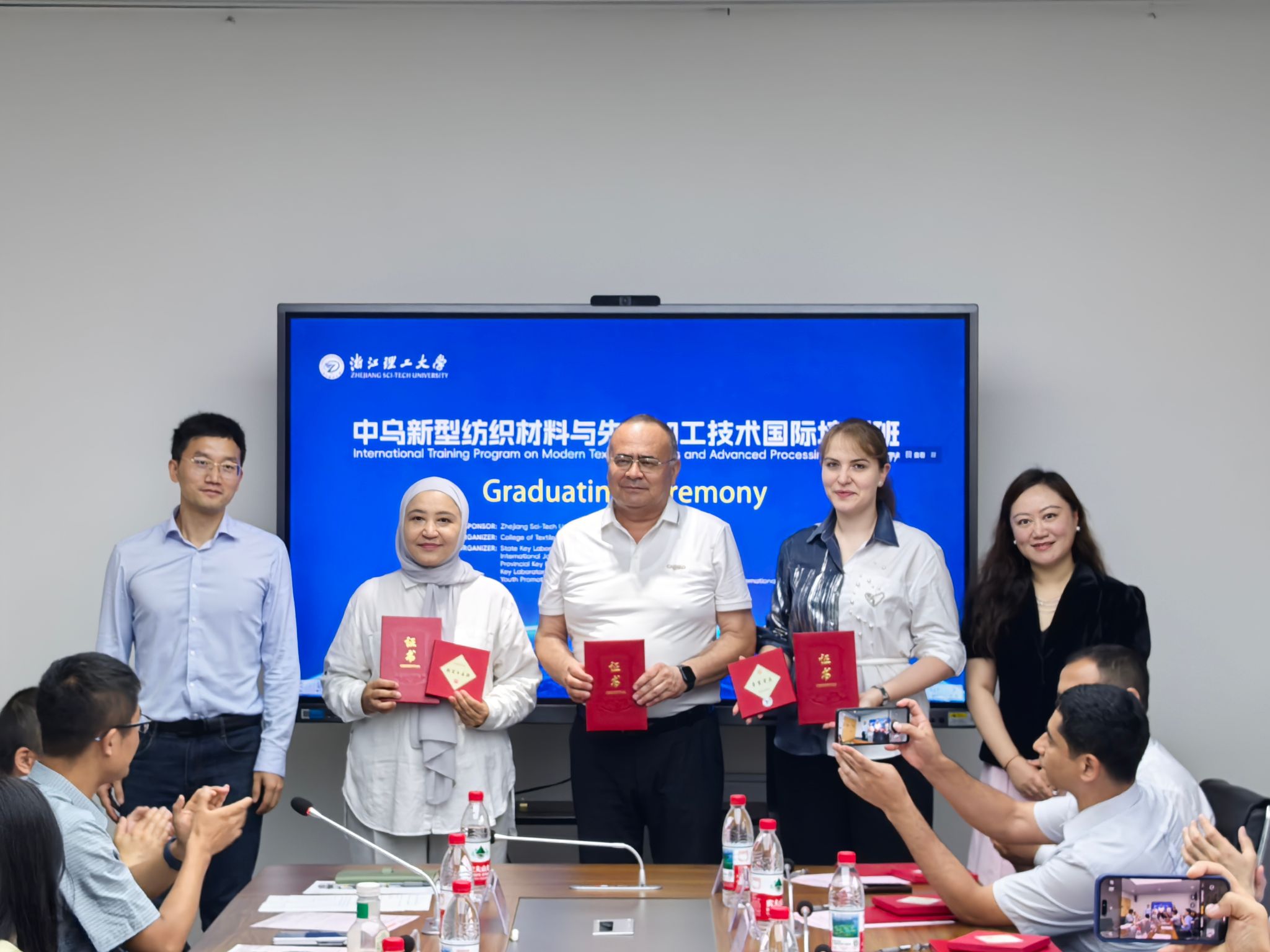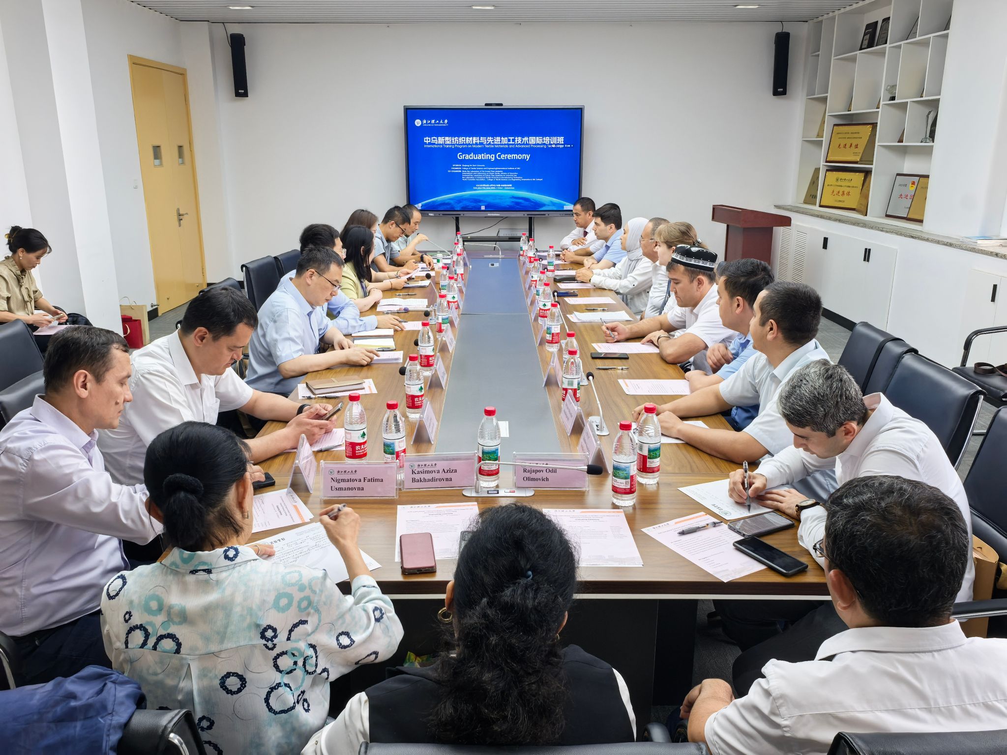 本次培训班共有来自乌兹别克斯坦塔什干纺织与轻工业学院15名学员参加培训内容围绕新型纺织材料与先进加工技术为主题,采取课堂教学和生产现场调研相结合的授课方式,就丝绸文化、缫丝织绸、先进纺织、产品设计与后整理等内容展开,开设了一系列全英文授课课程。培训期间,组织学员走访参观浙江省现代纺织技术创新中心、浙江东进新材料有限公司、万事利集团纺织相关企事业单位及中国丝绸博物馆本次培训班为期15天。