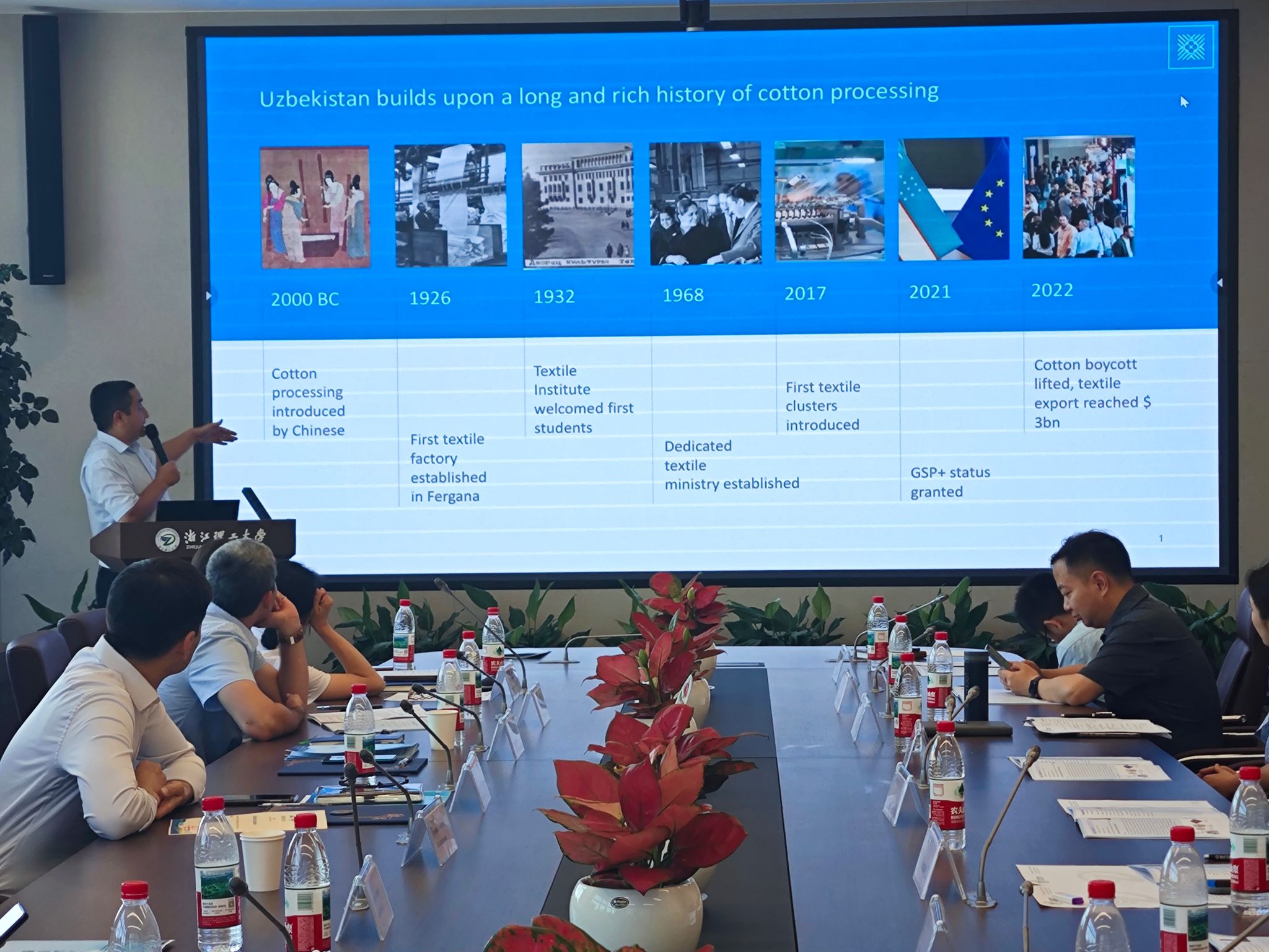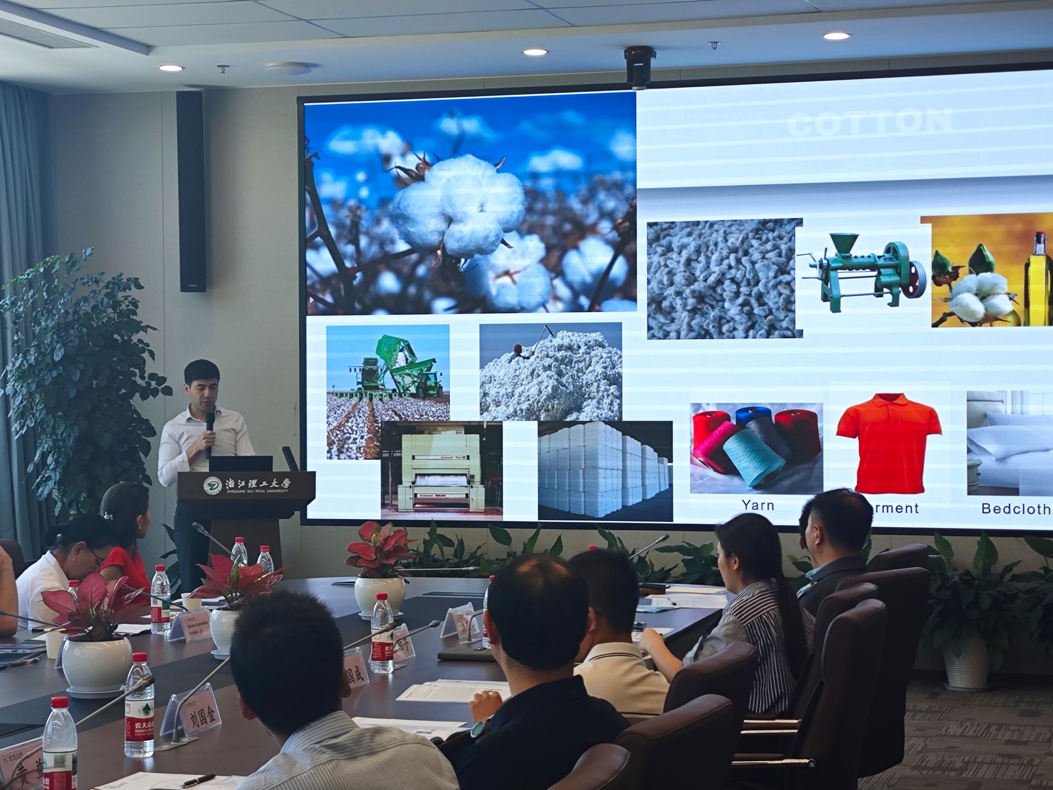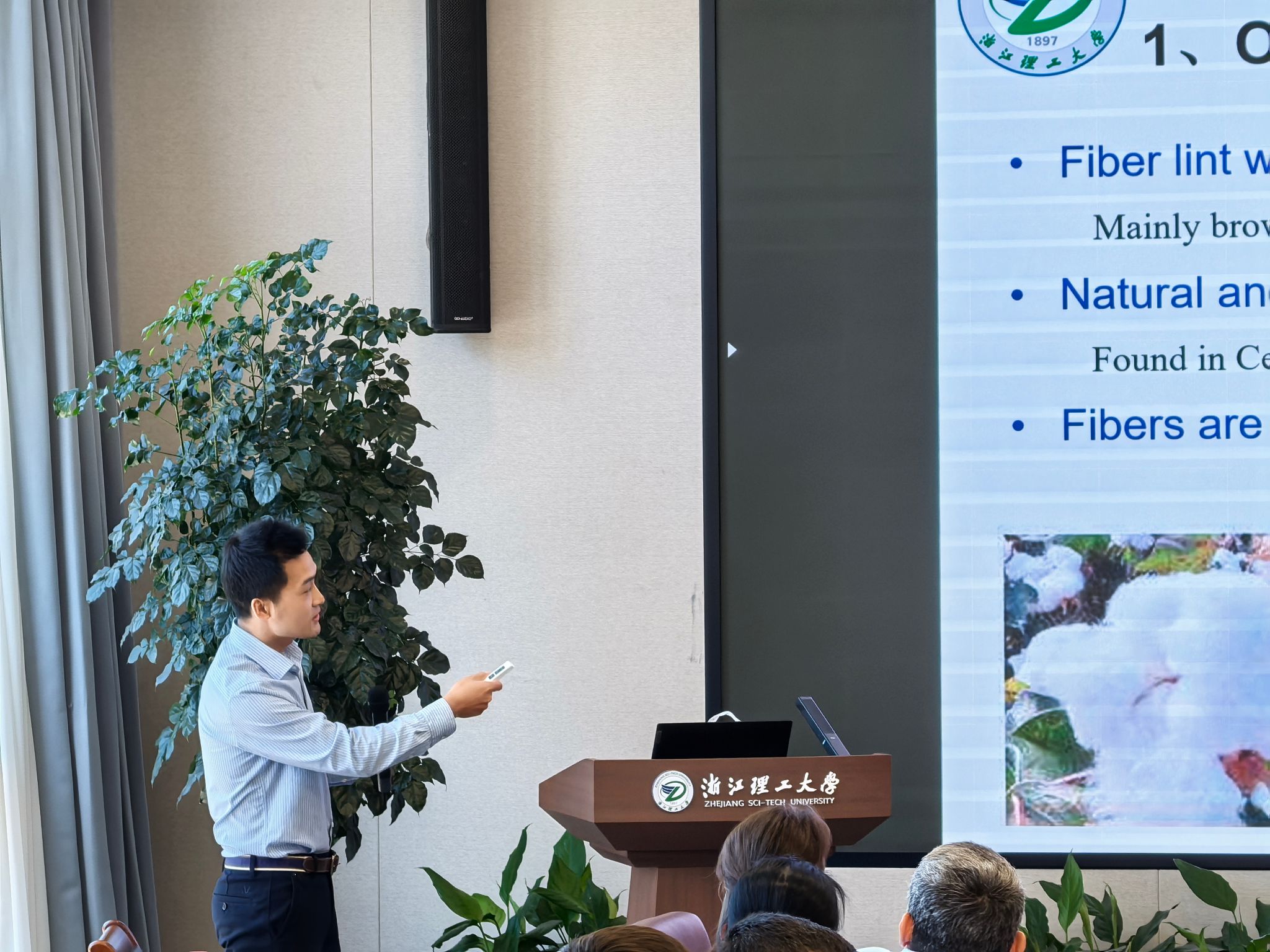 会议报告环节,来自中国、乌兹别克斯坦、巴基斯坦及俄罗斯等国的参会学者围绕“多功能电子纺织品”、“天然彩色棉的性能及湿加工”、“网络聚阴离子粘合剂”、“绿色包装材料”、“结构色材料设计”、“轧棉机技术改进”及“护理纺织品设计”等主题作了精彩报告。期间,参会学者对h图书馆