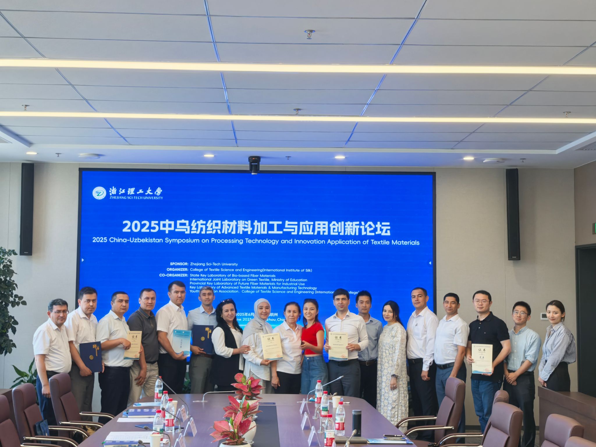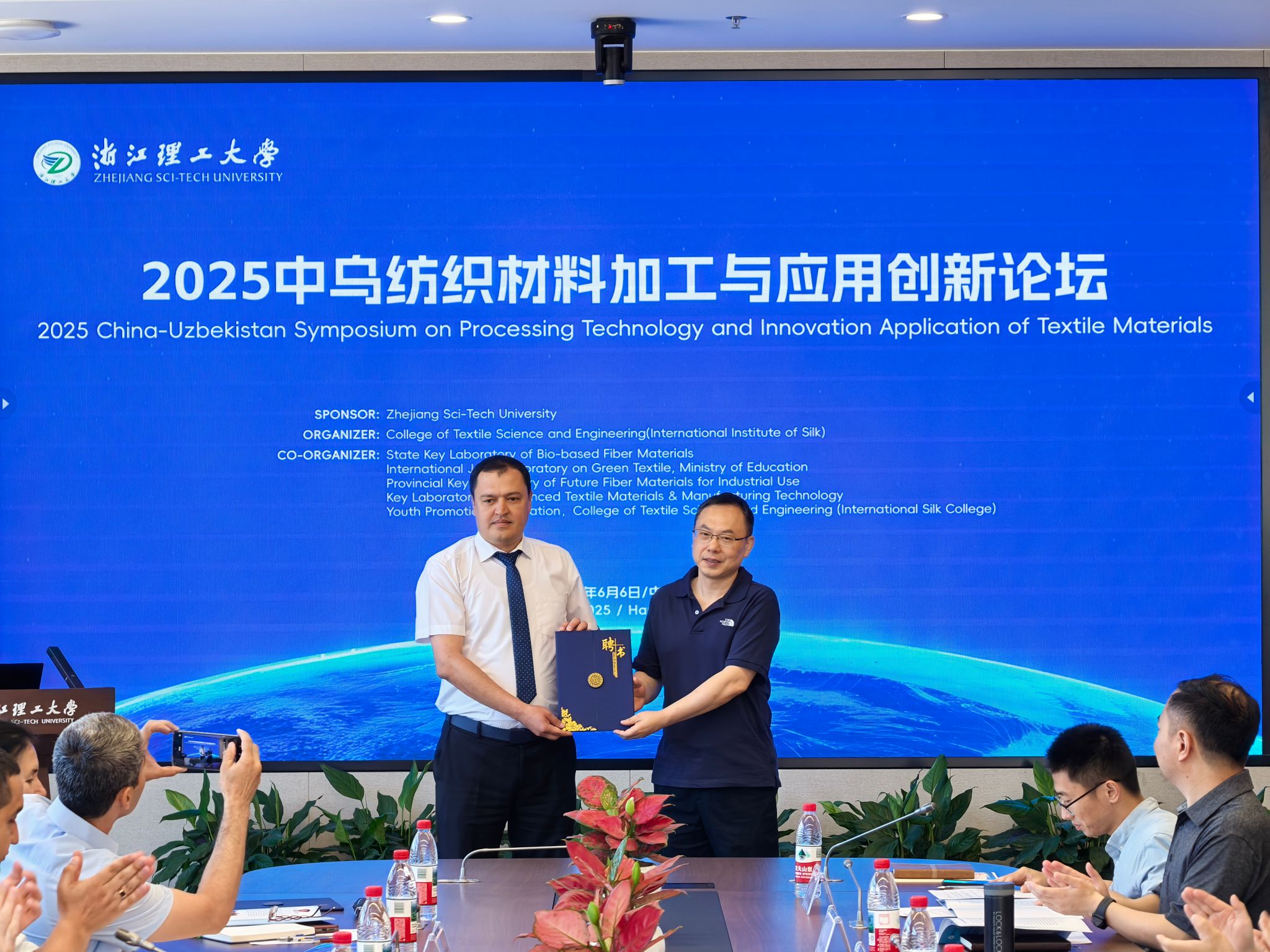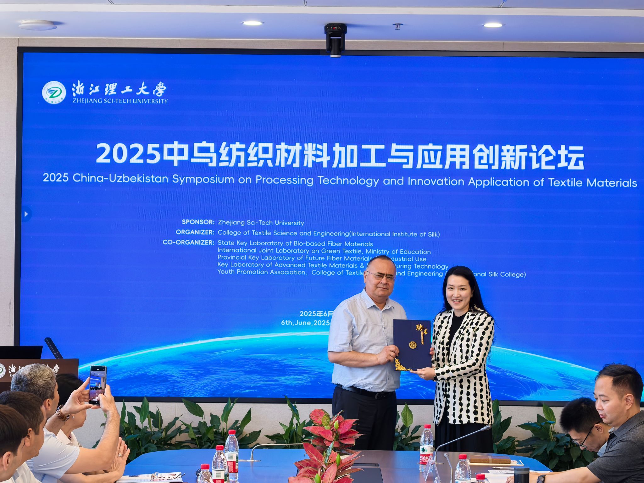 开幕式上,吕媛媛处长首先致辞,对参会的国内外学者表示感谢与欢迎,希望大家通过本次创新论坛,推动两校在纺织材料加工与应用领域的科技合作与人才交流。吕媛媛处长和于斌院长分别为塔什干纺织与轻工业学院4位教授颁发了导师证书。