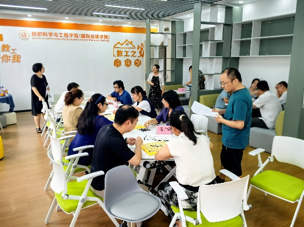 比赛间隙,大家暂时放下比赛的紧张,或复盘刚才的棋局牌路,分享心得;或聊起工作生活,相互关心。整个“工会之家”洋溢着欢声笑语,其乐融融,不仅疏解了平日工作的压力,更在无形中加深了同事间的了解与信任,凝聚了“纺院一家亲”的深厚情谊。