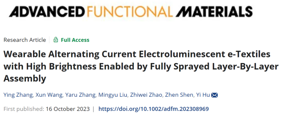 教师胡毅教授团队在可穿戴电致发光(ACEL)显示领域取得新进展,相关工作以 “Wearable Alternating Current Electroluminescent e-Textiles with High Brightness Enabled by Fully Sprayed Layer-by-Layer Assembly” 为题发表在国际顶级学术期刊《Advanced Functional Materials》(IF=19.0)上。h图书馆