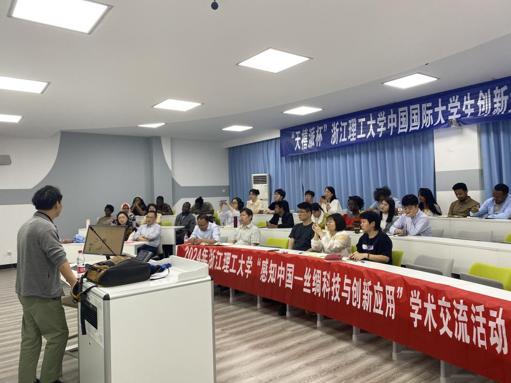 期间,邢孟秋院士给师生作了精彩的学术报告,该报告同时是国家留学基金委主办的“2024感知中国—丝绸科技与创新应用”学术交流活动的重要环节。报告会在2-S343智慧教室举行,由纺织科学与工程学院院长于斌教授主持。h图书馆