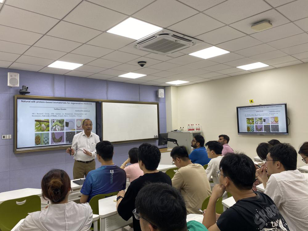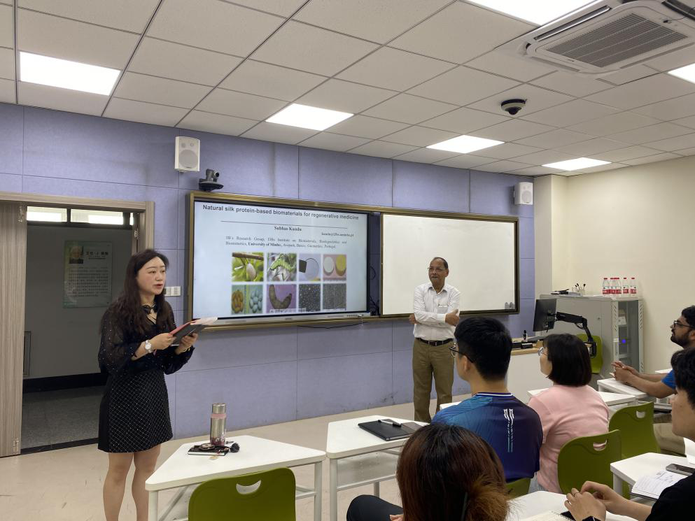 Subhas C Kundu教授作了题为《用于再生医学的天然丝蛋白基生物材料》的报告。报告会在17-609教室举行,由h图书馆