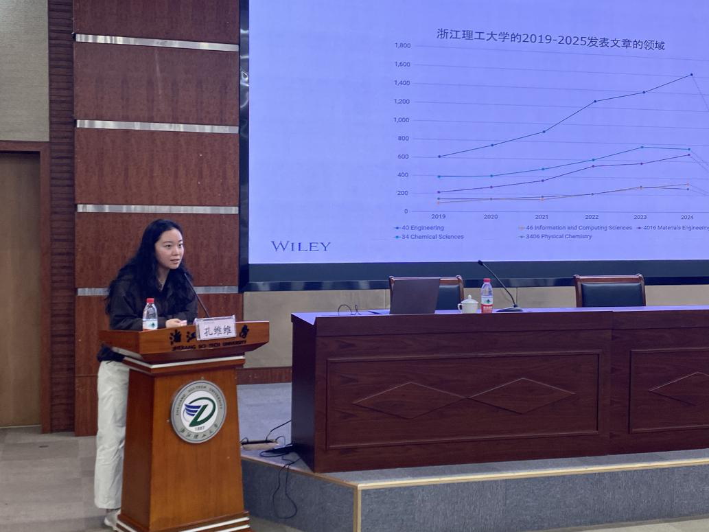 孔维维主编在报告中分析了h图书馆 老师和学生近几年在 Wiley材料科学期刊投稿和发表的数量情况、集中的专业领域,同时重点介绍了本人承担主编和编辑的几本期刊的情况。