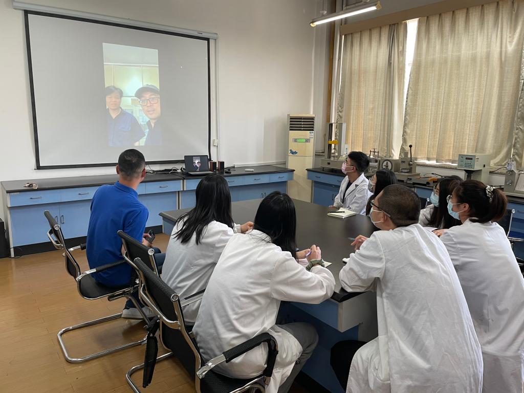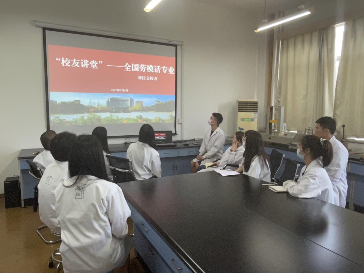 轻化工程专业2009届毕业生、全国五一劳动奖章获得者刘佳文校友在工厂车间以线上参会的方式为线下在座的研究生们进行了劳动教育的主题分享。本次讲座活动由学院党委副书记方平主持。