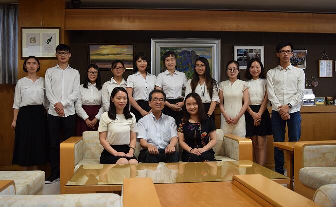 在本次短期交流中,在日方学校全程陪同和精心安排下,21日上午,交流团参加了日方组织的欢迎仪式,纤维学部倪庆清教授致欢迎辞,双方对各自学校及学院进行了介绍,国际交流推进处相关老师一起出席了欢迎仪式。接下来几天,交流团参观访问了日本国立信州大学本部及纤维学部纺织纤维、感性工学科部分实验室、MIMAKI Engineering股份有限公司、世界遗产富冈制丝厂等,与日本青少年以及教授、研究人员等进行了深入的科技交流,与日本学生一起听取了“多级结构纳米纤维过滤吸附材料及纳米纤维纱”的学术报告,交流团全体成员受益良多。交流团分别受到信州国立大学校长滨田州博教授和纤维学部部长下坂诚教授的热情接待和亲切交流,同学们积极分享了交流感言。25日下午在上田市信州大学纤维学部,下坂诚教授为交流团每位成员颁发了樱花科技计划荣誉证书。