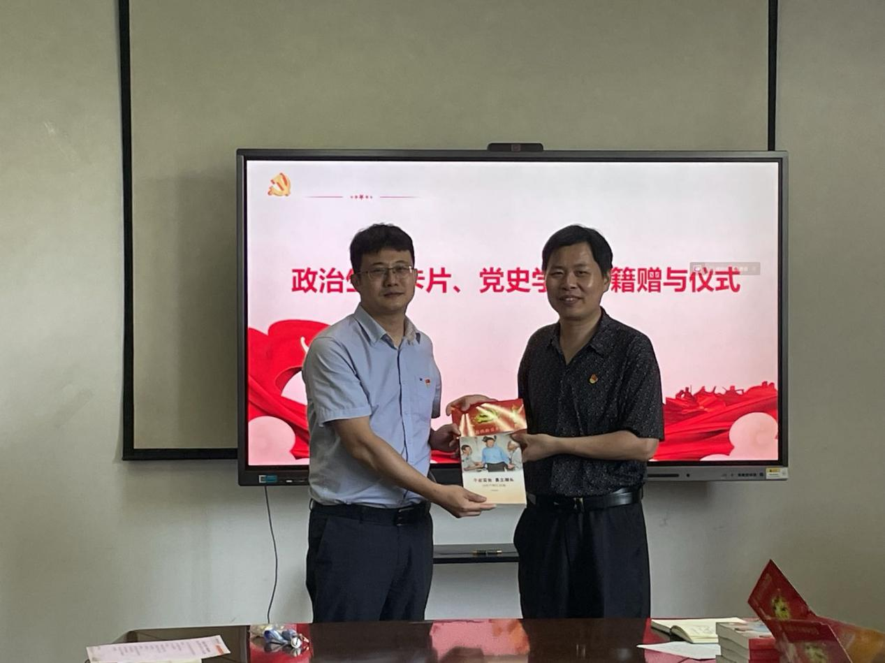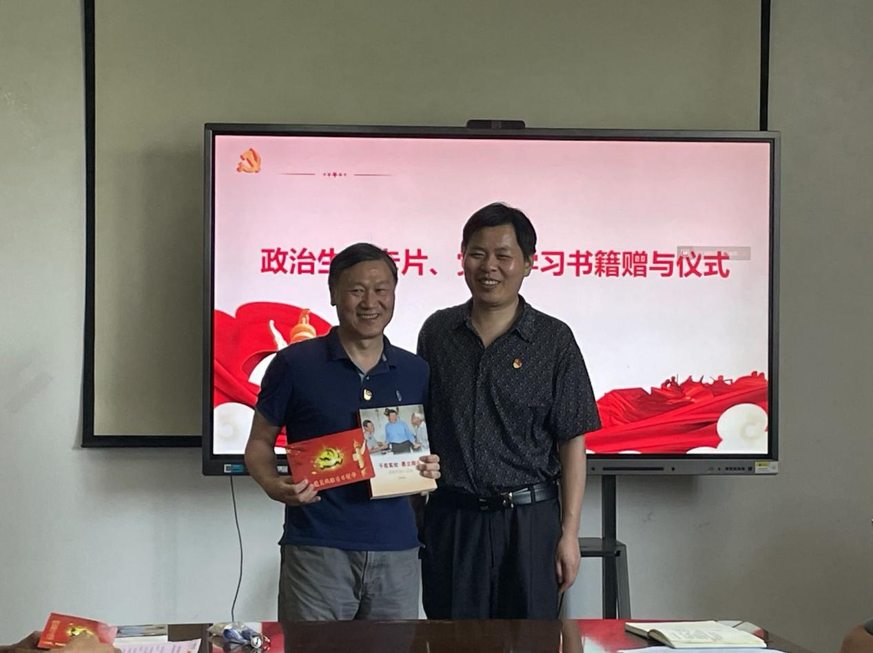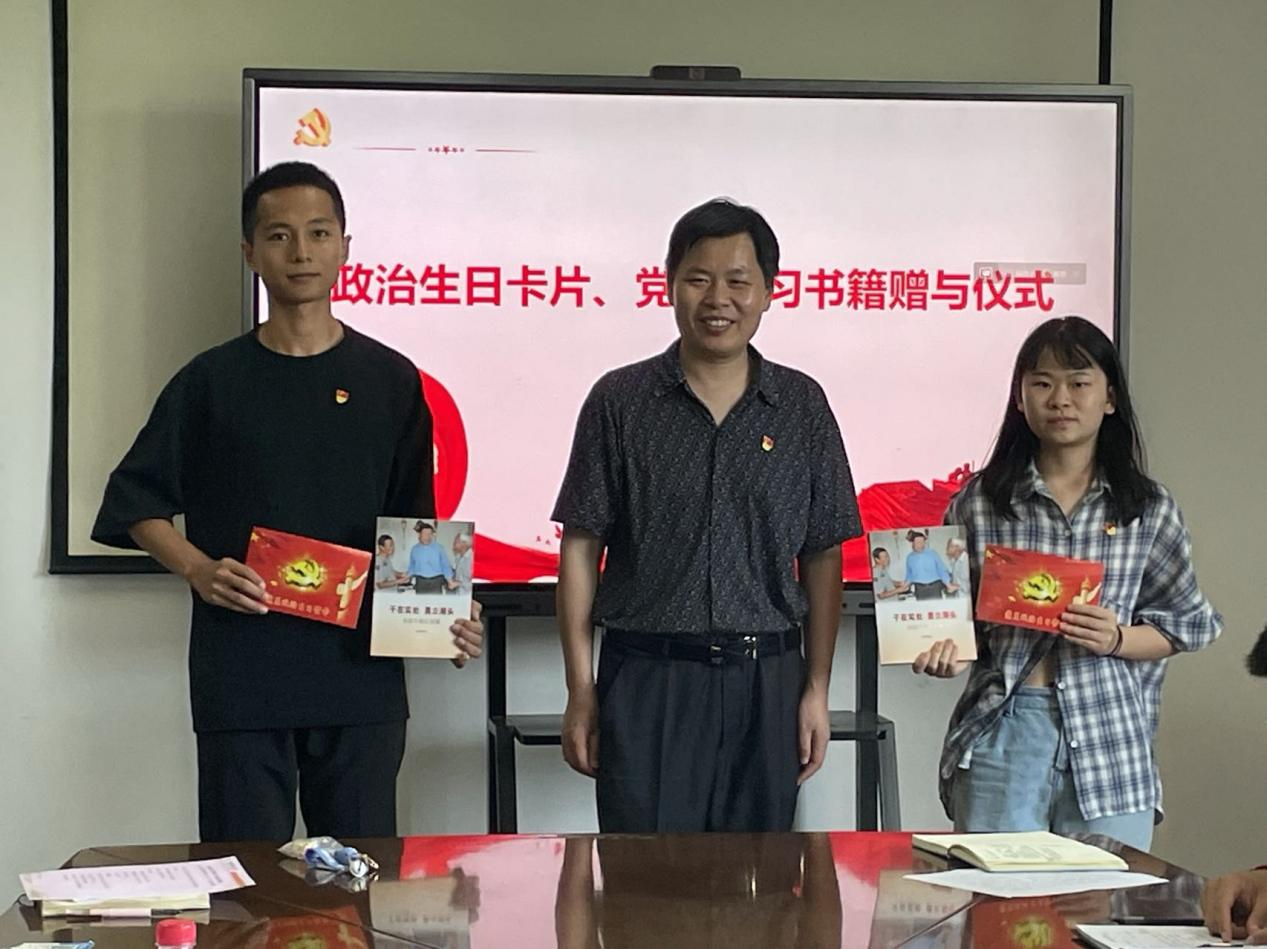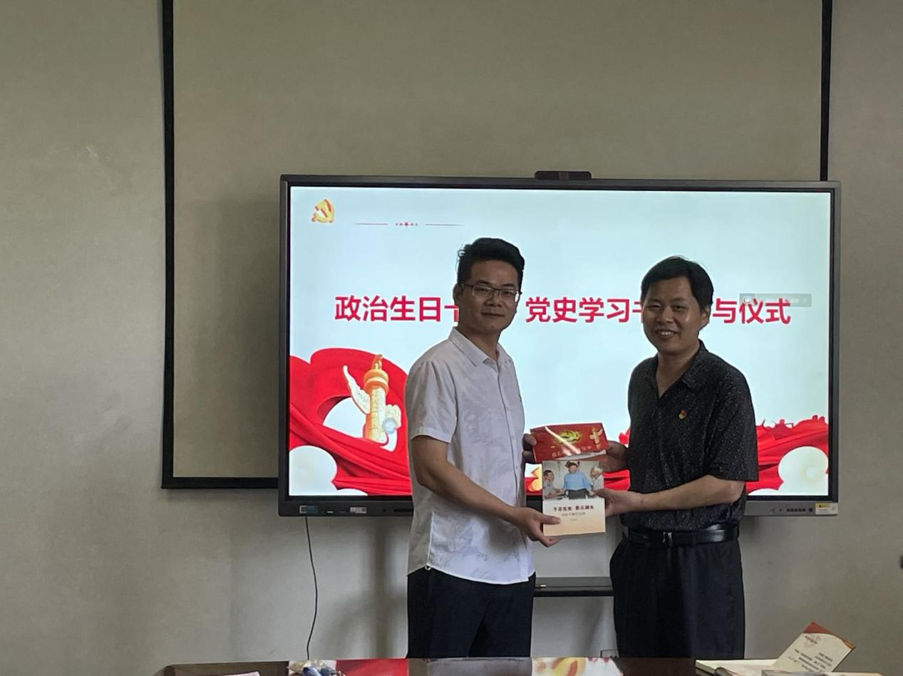 活动中,还举行了“政治生日会”环节,学院为光荣在党三十年、二十年、十年以及一年的师生党员定制了政治生日卡片,赠送了红色读本。“生日会+学习会”的意义叠加,令师生党员觉得意义非凡,30年党龄的夏新兴老师表示要把服务企业、钻研创新转化为践行省第十五次党代会精神的实际行动;20年党龄的胡毅老师回顾入党时的情形,表示要更加明晰自身作为教育者和科研工作者的定位,成为创新驱动力量的有机构成;10年党龄的李成才老师、在读博士李菁抒发了激动的心情,表示要以学为先,身体力行发挥党员先锋模范作用;另有刚转正的学生党员李超、明琳也回顾自己的入党初心,用“政治生日”的自豪感激励担当作为的幸福感。最后,在徐伟强的领誓下,学院理论中心组成员和参会党员师生代表在大屏前重温入党誓词。