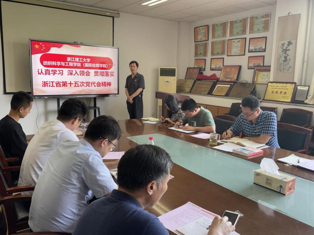 活动中,学院党委书记徐伟强对省第十五次党代会精神专题学习进行导学。他围绕大会决议报告,从“省第十五次党代会情况介绍”、“对过去五年历史性成就回顾”、“深刻理解5大战略指引,牢牢把握11方面重要遵循”、“今后五年的奋斗目标和主要任务”等方面进行大会精神传达,鼓励在座的师生党员要深谙科技兴纺的“国之大者”要义,在自己的岗位上以实际行动迎接党的二十大胜利召开。随后,理论中心组成员围绕着大会的重要精神进行心得感悟的分享。