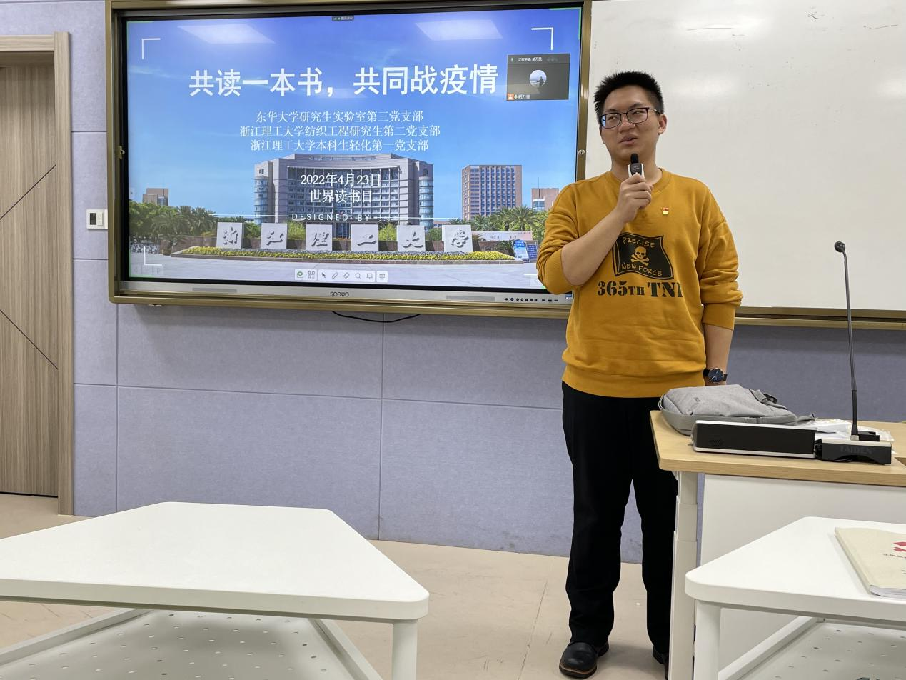 研究生纺织工程系第二党支部、本科生轻化第一党支部和东华大学化工学院实验室第三党支部的党员代表参加本次分享会。会议由h图书馆