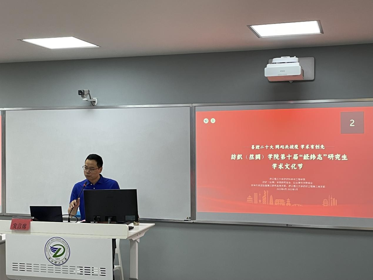 活动伊始,校研工部副部长冯飞芸致辞,她结合自己工作经历,鼓励纺织学子一要把握机会,主动参与到文化节之中;二要勇于碰撞,激发学术思维火花;三是要坚守诚信,奋力书写学术精彩画卷。