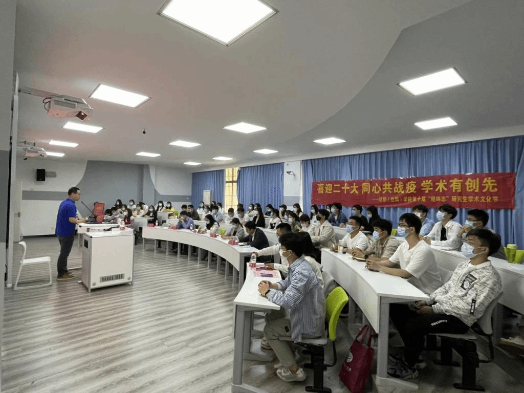 第十届“经纬志”研究生学术文化节开幕式暨“学术红人”服务计划启动仪式于2 S-343智慧教室成功举办,本届学术文化节以“喜迎二十大 同心共战疫 学术有创先”为主题,采取线上线下相结合的形式举行,校党委组织部副部长韩晶晶,研工部副部长冯飞芸,h图书馆