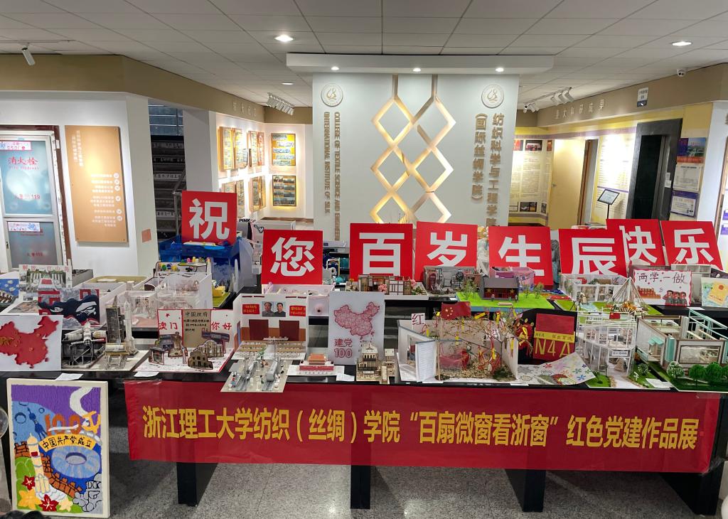 本次橱窗作品展围绕浙江百年发展历史开展艺术设计。学院纺织品设计专业、丝绸设计与工程专业的学生通过模型板和亚克力板固定作品的外延,以形式各异的透明软塑料片装点橱窗的内在设计,从南湖红船的开天辟地,到解放浙江的峥嵘岁月,再到浙江发展的日新月异,他们或用轻黏土塑造出红色作品里的场景细节,或用模型板还原出红色建筑的一砖一瓦,或用千线万针绣出自己的一片“红心”,向党的百岁生辰献礼。