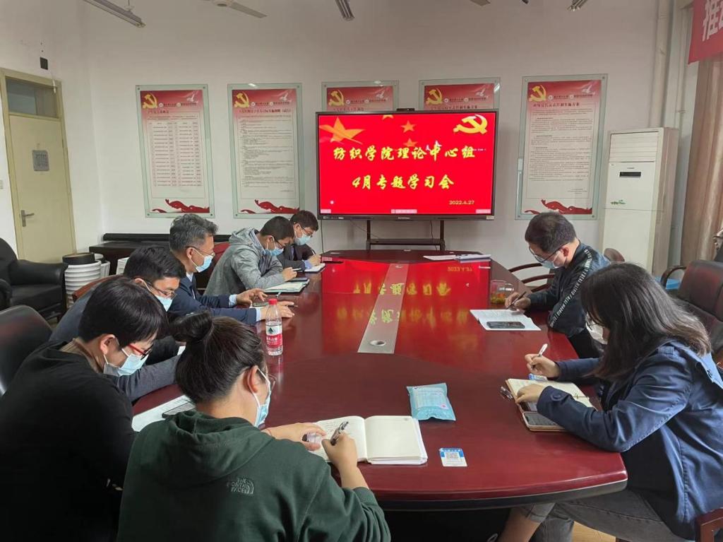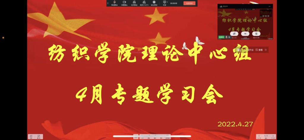 于17-314会议室进行4月理论中心组学习会。由于受到杭州疫情影响,本次理论中心组学习以线上+线下的方式进行。学院理论中心组成员均参加了此次会议。本次学习会由学院党委书记徐伟强主持。