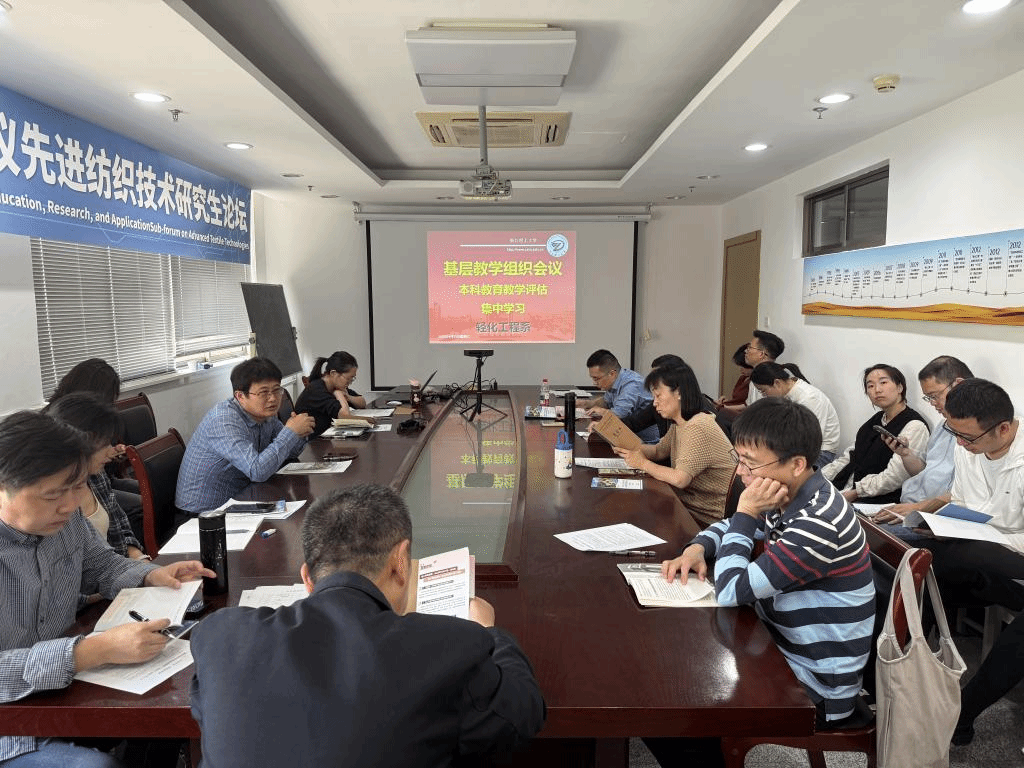 2025年4月23日,纺织科学与工程学院轻化工程系召开基层教学组织专题会议,围绕本科教育教学审核评估工作开展系统部署与专题学习。会议由系副主任王莉莉主持,学院副院长兼系主任胡毅、副主任吴金丹及全系教师共同参会,通过政策研读、案例解析和专题学习等形式,为迎接本科教育教学审核评估做好充分准备。