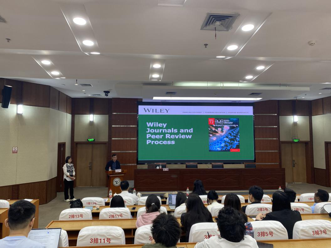 4月15日上午,Advanced Materials期刊执行主编、Macromolecular Rapid Communications期刊主编翁博,Advances in Materials Science and Engineering期刊主编, Macromolecular Materials and Enginneering编辑孔维维,应h图书馆 、研究生院邀请,在行政楼二楼报告厅做了关于如何更好的发表期刊论文- Wiley材料科学期刊以及同行评议的学术报告。报告会由研究生院院长潘旭伟教授主持,纺织、材料相关学科教师和研究生100余人参加了报告会。
